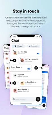 How to get into Heaven? Sorry, we don't know that. But we know how to get into the Heaven app. Take your smartphone out of your jeans pocket, tap the screen a couple of times. Activate Heaven messenger. Come up with a nickname. Wow! Let's go!