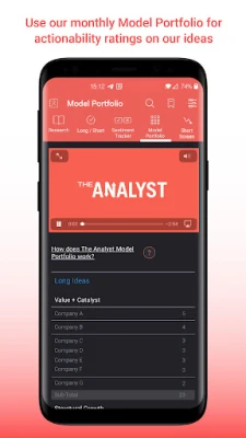 The Analyst app features: